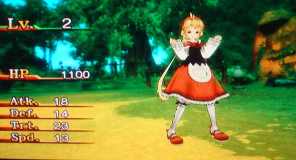 ウッドブロックの林は戦闘シーンになると毒のダメージ受けっぱなしだったのでヒヤヒヤでした。こんなことなら回復系のアイテム一杯購入しとけばよかったっす・・・。ポルカ・ショパンいなくなったんで、誰が仲間の体力を回復させるのさ~ってプチ・パニックです。そして改めてジックリ各キャラの必殺技みてたらビオラとクラベスが回復系もってたのでやや安心。でもクラベスは自分を回復させられなかったので・・・このウッドブロックの林はビオラのヒール・アローで自分も仲間も回復しながら・・・攻撃しての大活躍です。ビオラ使えるネェ~。スコアピースも一個ゲットしたし!!会心のVサインっす。