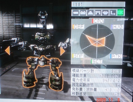 機体名:last(ラスト任務専用に製作したので・・・)・逆関節タイプの脚:RFZ-RJ-1(ラフカザエル製)