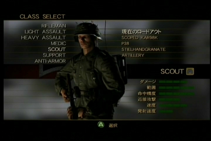 ドイツ軍のスコープスナイパー銃の最大所持弾数が25発多い。偵察やスナイピングを得意とする兵科。全クラスの中で最高の射程を持つ。双眼鏡を装備しており、爆撃攻撃を要請できる。