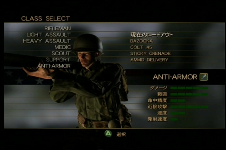 発射速度1対戦車用としての意味合いが強いクラスで、初期装備のロケットランチャーは戦車を2発で仕留める威力をもつ。また、弾薬補給を味方にできるため、後方支援もできる。また前線では堅固な敵陣を崩す1発になるやもしれない。